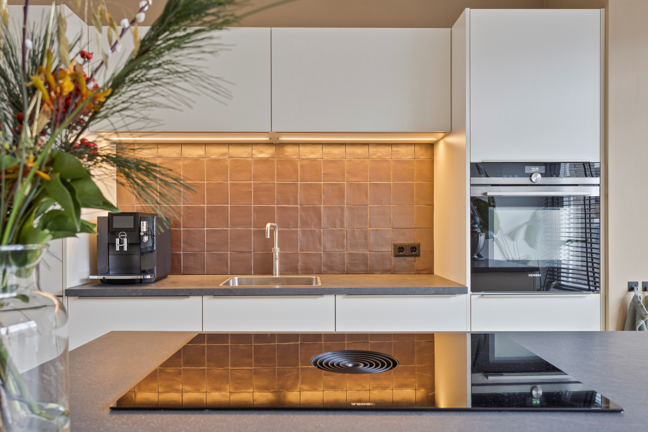 Keuken (2020), een open en moderne keuken gelegen aan de voorzijde van de woning, voorzien van een recht keukenblok en een kookeiland.