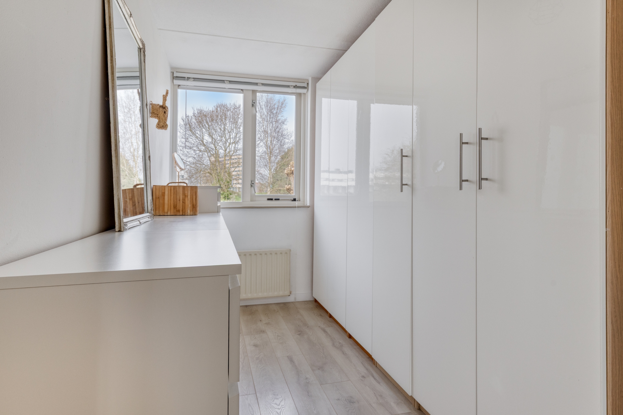 Slaapkamer 3, een prima kamer aan de achterzijde, wordt momenteel gebruikt als ‘kastenkamer’.