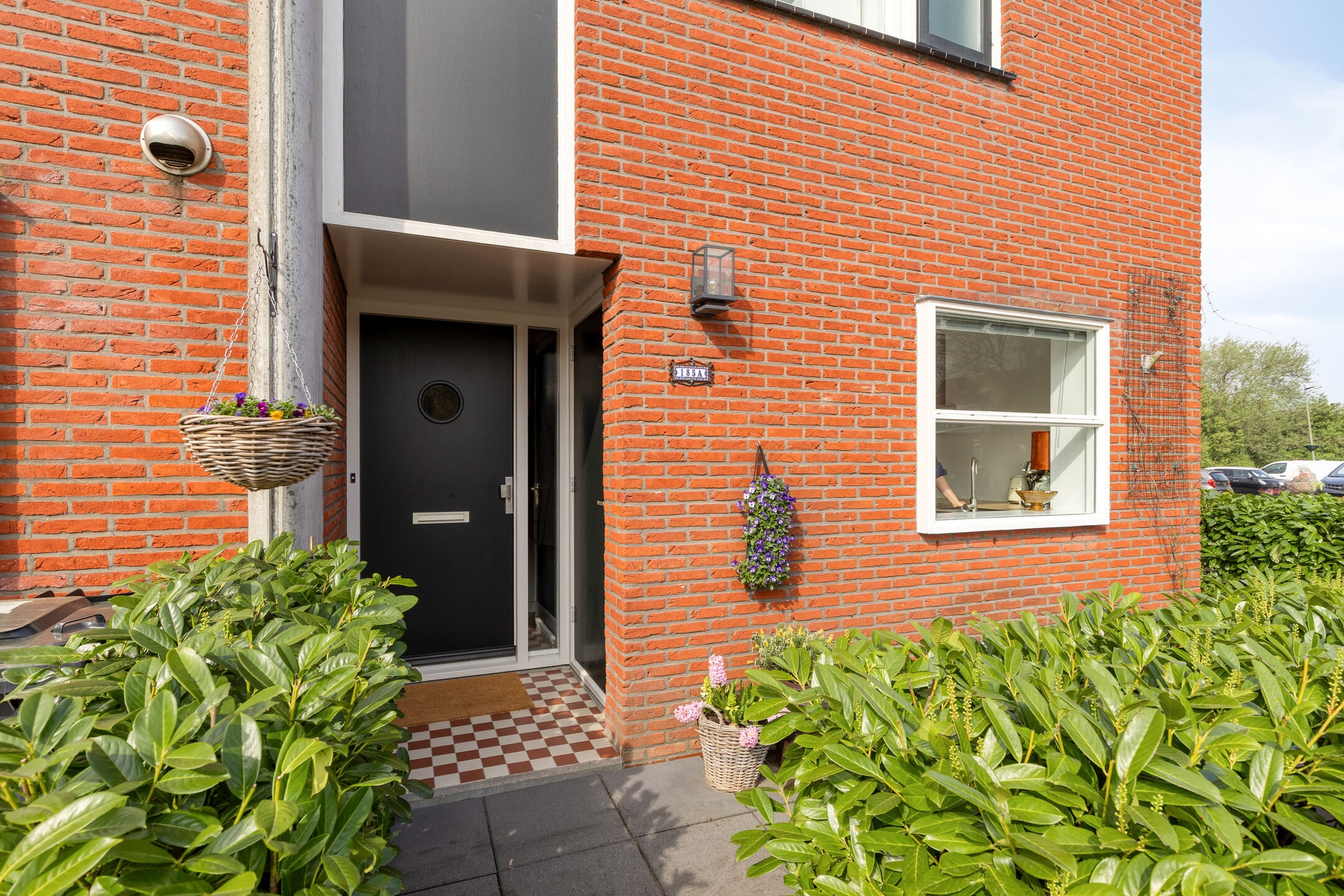 Voortuin, voorzien van bestrating en groen. Vanuit de voortuin is er toegang tot de stenen inpandige berging en de zij-tuin.