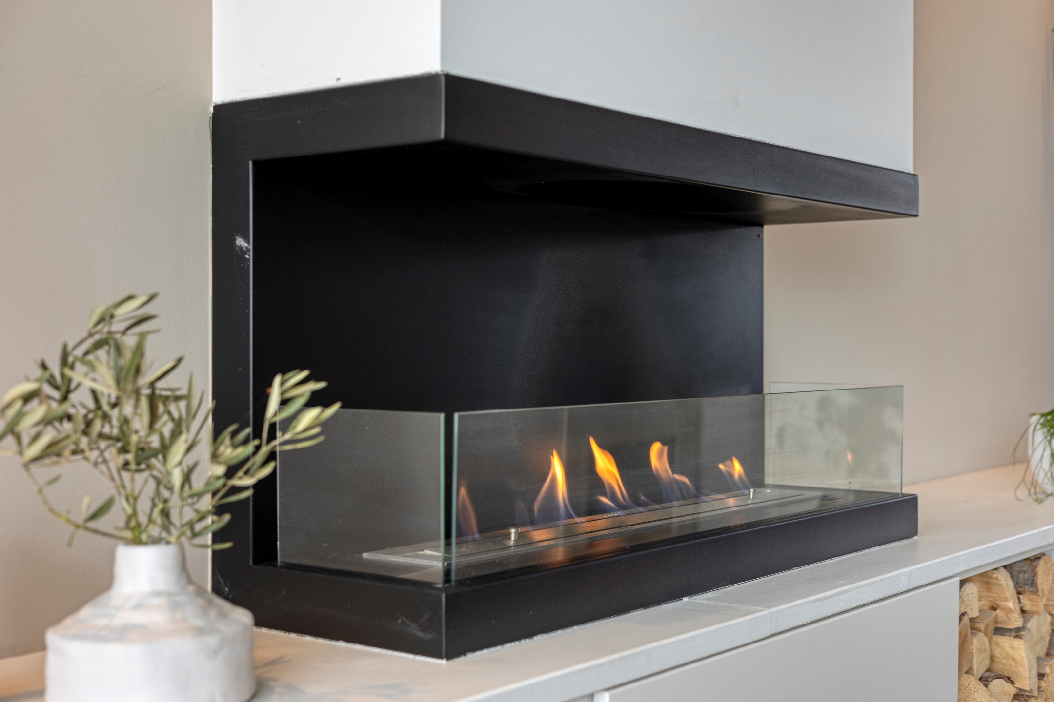 Woonkamer, een ruime en uitgebouwde woonkamer met veel daglicht! De woonkamer is voorzien van een uitbouw met serre (2007), een brede aluminium schuifpui naar de achtertuin, een gezellige bio-ethanol sierhaard en toegang tot de keuken.