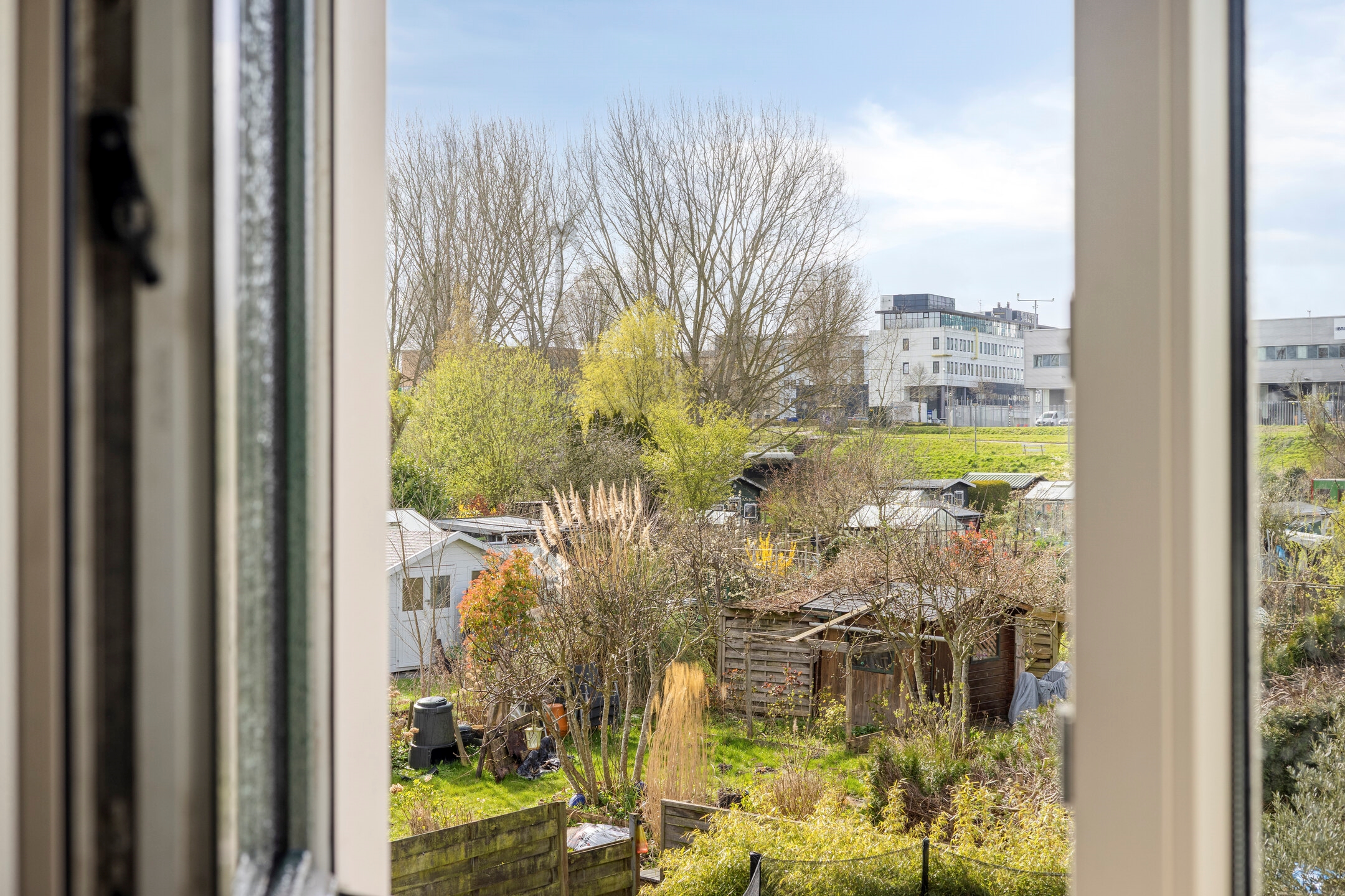 Slaapkamer 4, een zeer royale slaapkamer, gelegen aan de achterzijde, met fraai en groen uitzicht over de achtergelegen volkstuinen!