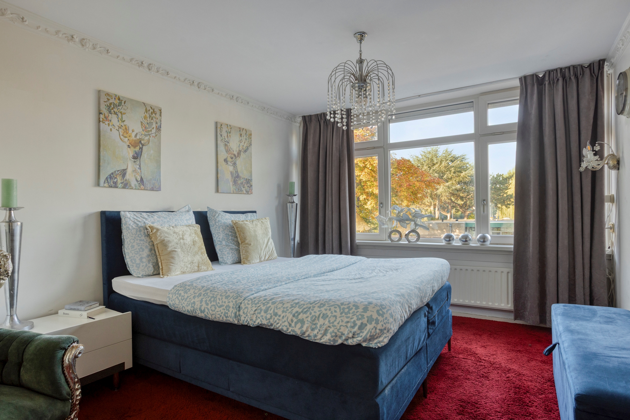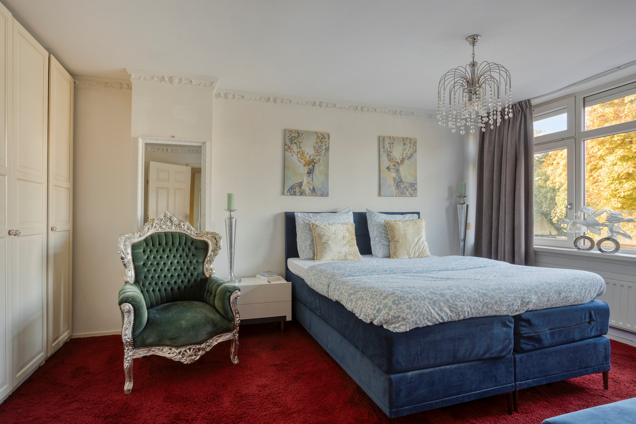 Slaapkamer 1, een royale slaapkamer, gelegen aan de achterzijde, voorzien van een grote kastenwand en een prachtig uitzicht.