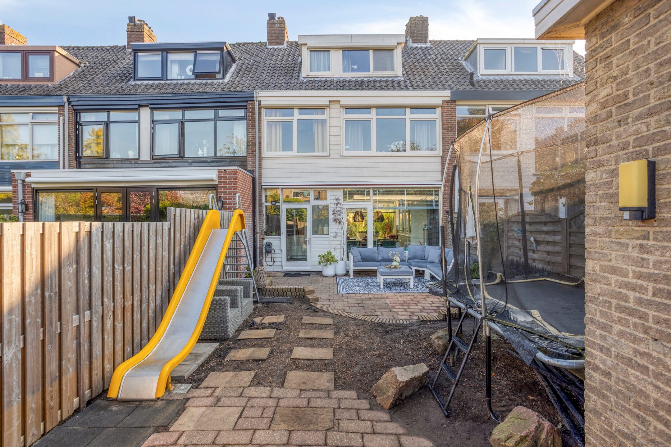 Een superleuke ruime EENGEZINSWONING met een zonnige voor en achtertuin (ca. 12,5 meter diep!) op het zuidwesten. In deze achtertuin geniet je tot in de late uurtjes van de zon.