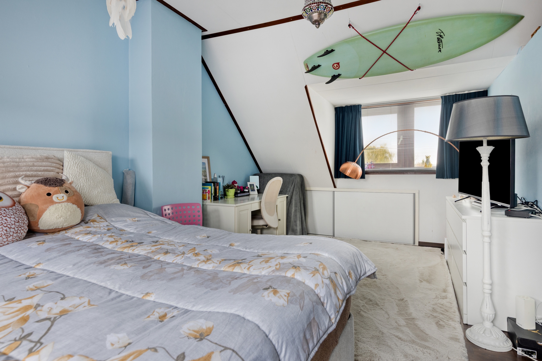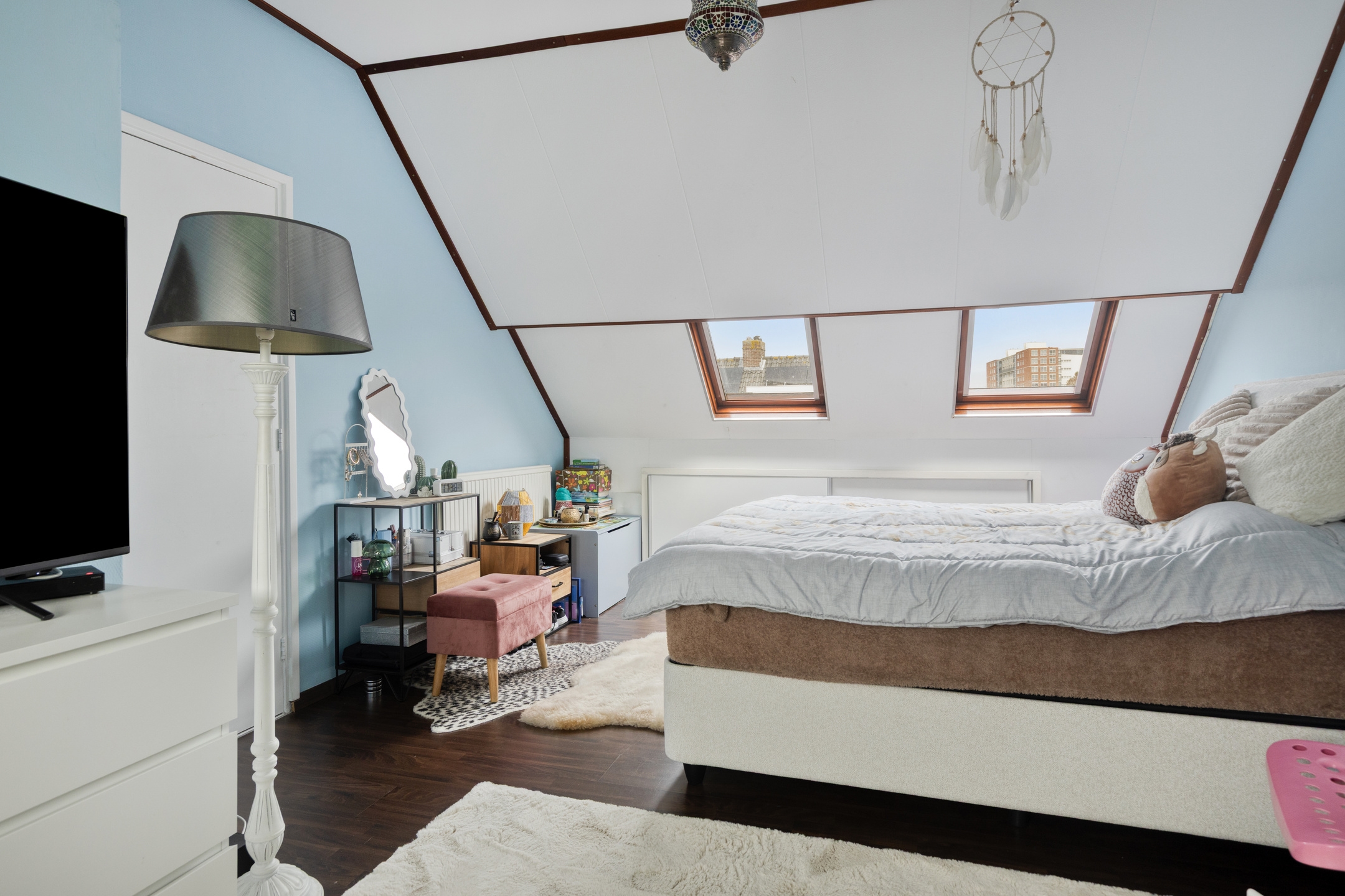Slaapkamer 4, een royale en gezellige kamer met een dakkapel aan de achterzijde, 2 Velux dakramen aan de voorzijde en bergruimte achter de knieschotten aan de voor- en achterzijde.