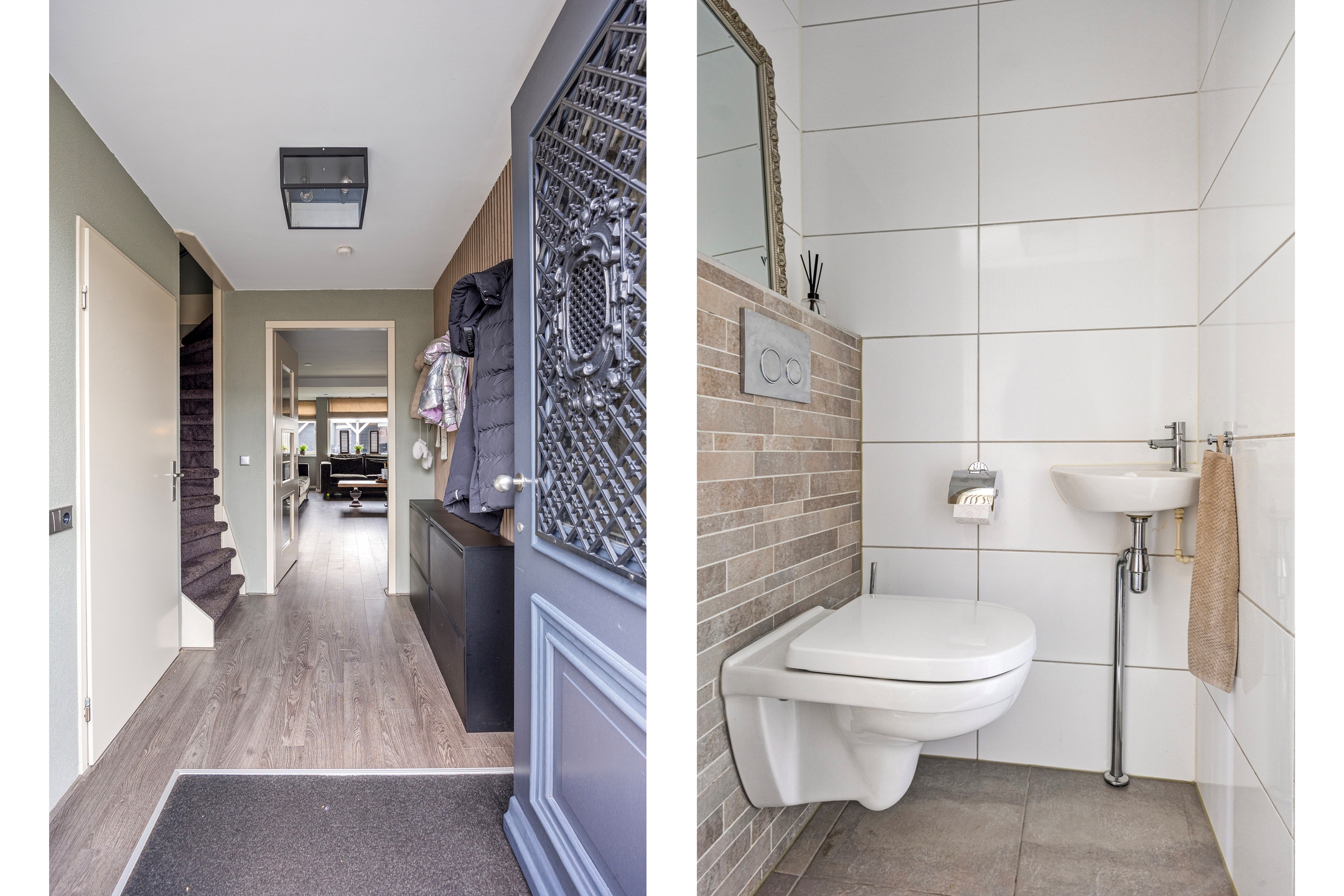 Entree/hal, voorzien van een schoon/droogloopmat en biedt toegang tot de woonkamer, toilet, meterkast en trapopgang naar de eerste verdieping.