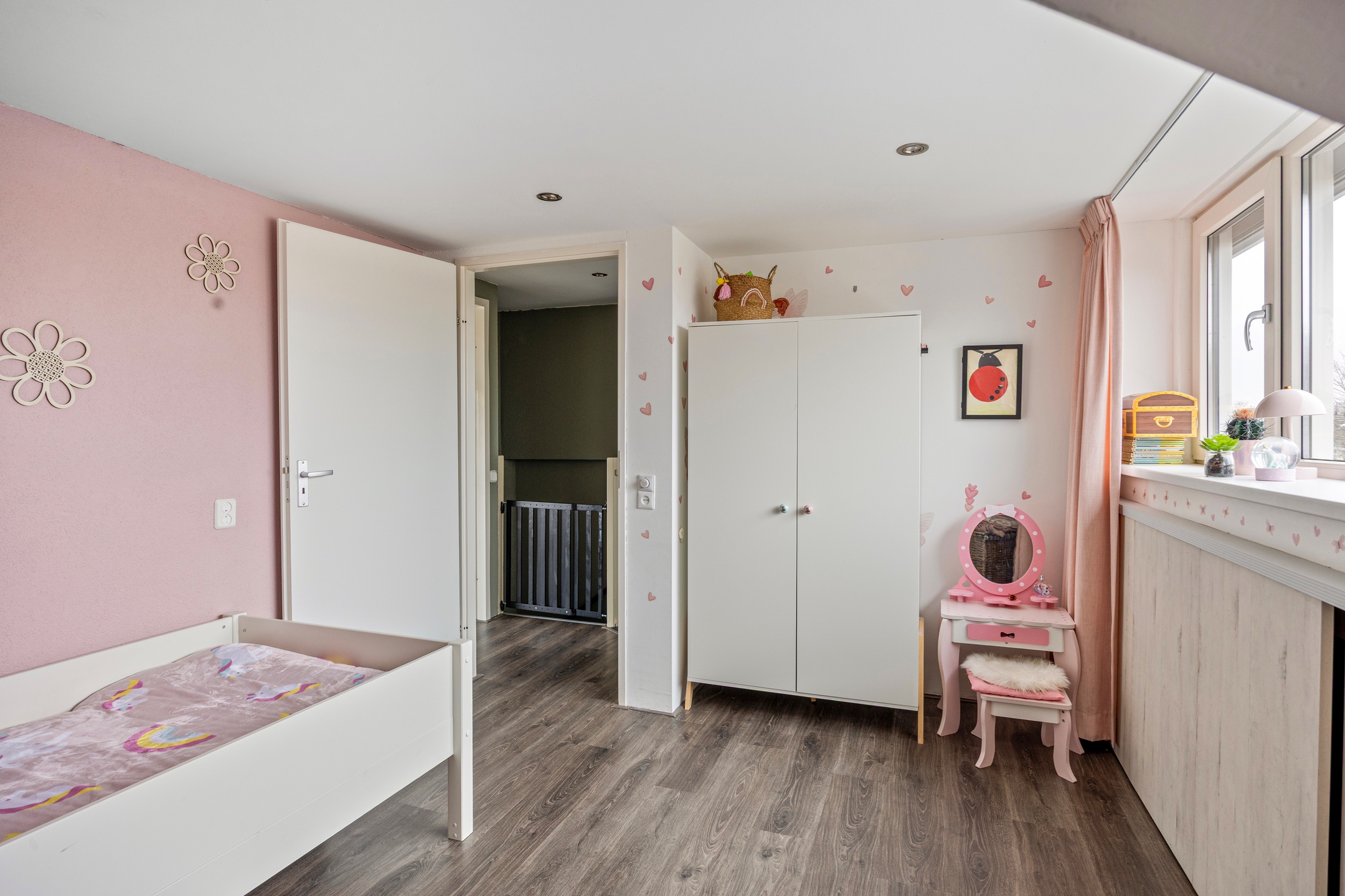 Slaapkamer 4, eveneens een prima kamer en ook voorzien van laminaat vloerafwerking.