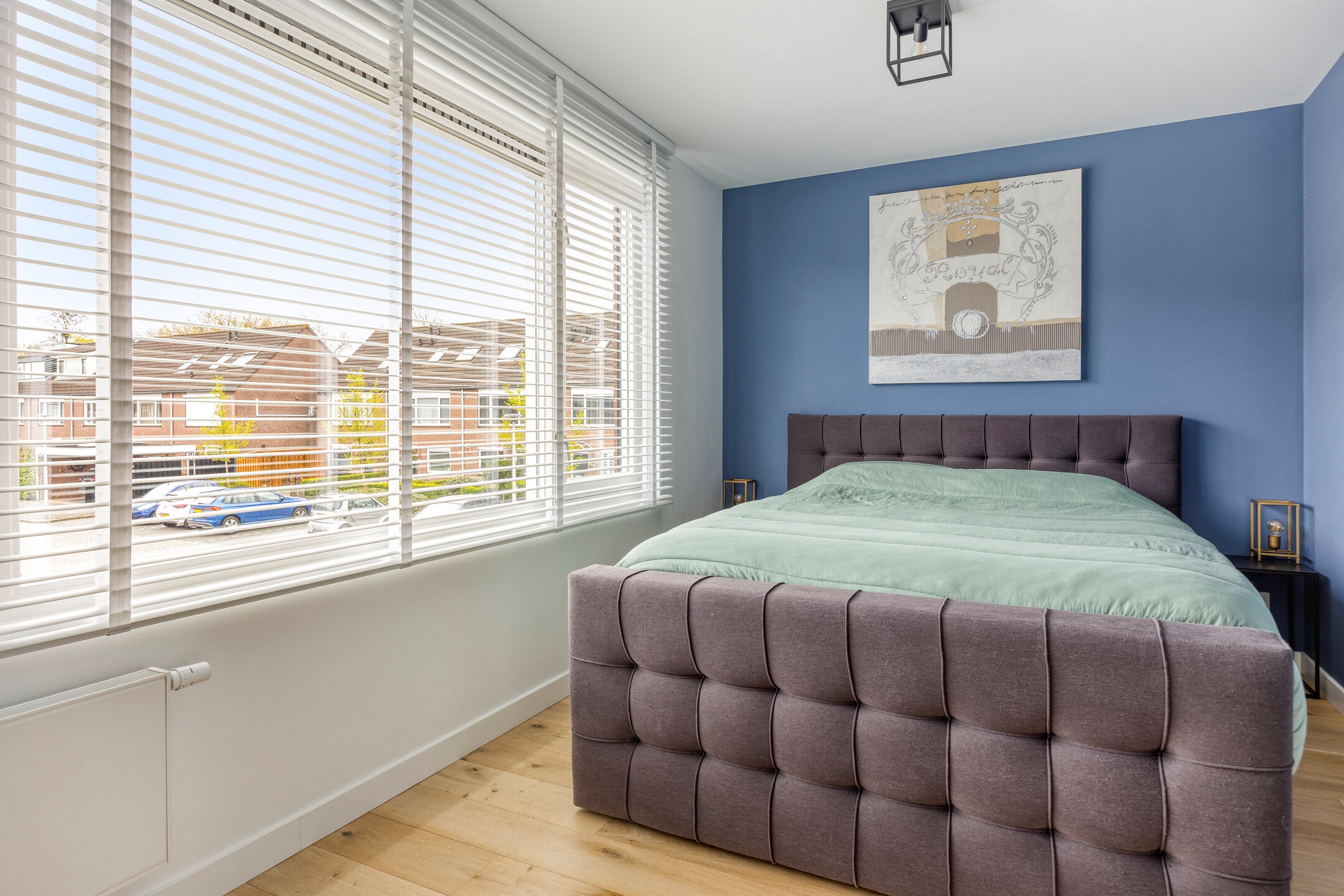 Slaapkamer 3, een riante slaapkamer, gelegen aan de achterzijde. De kamer is voorzien van een grote dakkapel met elektrische screens (2025) en een praktische (inloop)kast.