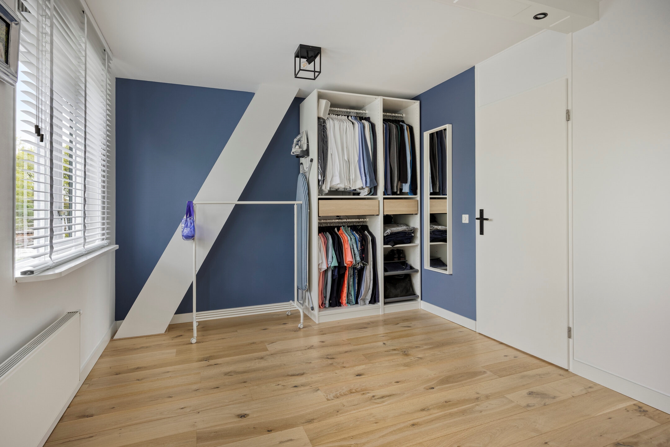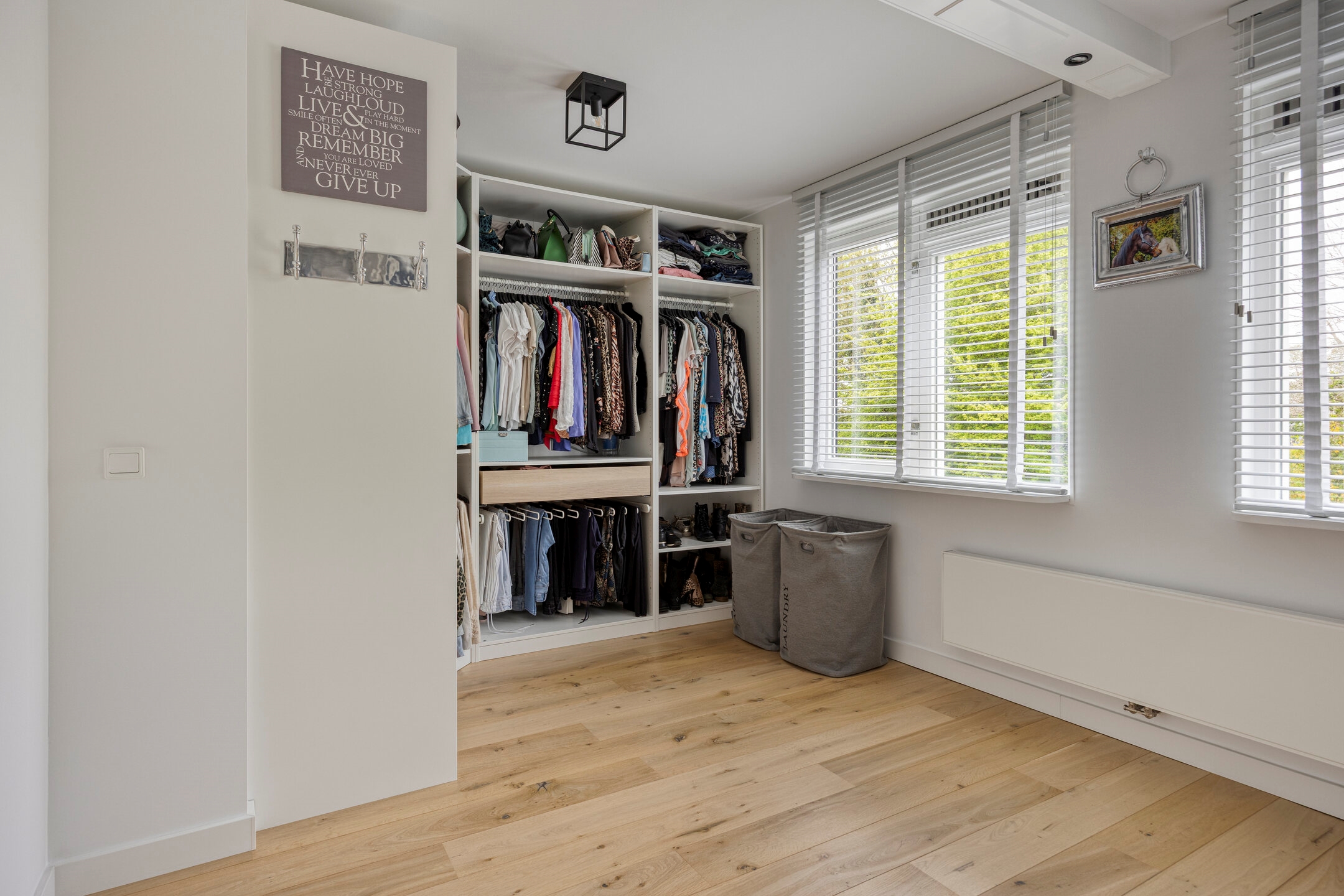 Slaapkamer 2, eveneens een ruime kamer (oorspronkelijk 2 kamers), welke nu in gebruik is als walk-in closet. Ook deze kamer is voorzien van elektrische rolluiken (2021).