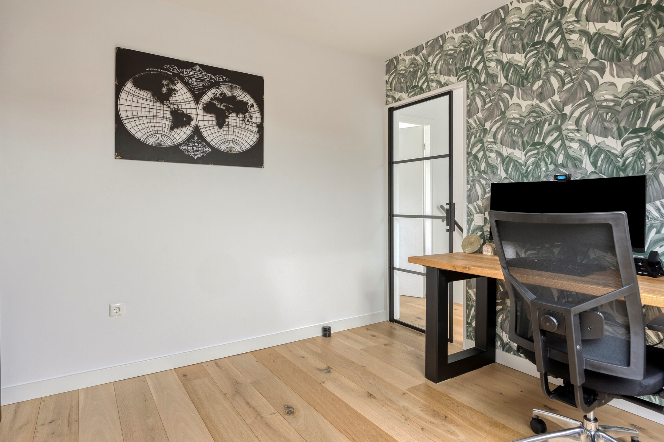 De eerste verdieping is voorzien van een strakke eikenhouten parketvloer.