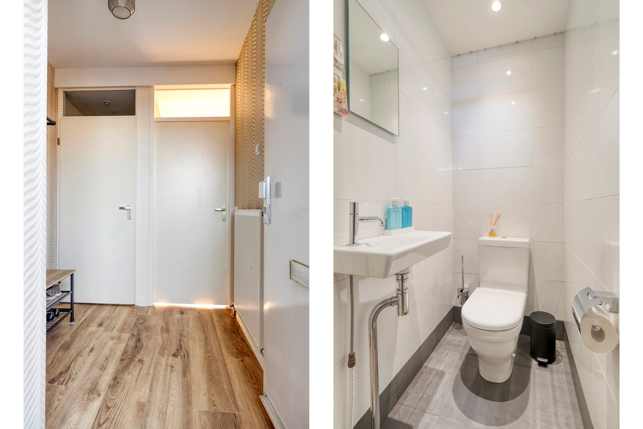 Entree/hal, met toegang tot woonkamer, toilet en meterkast.