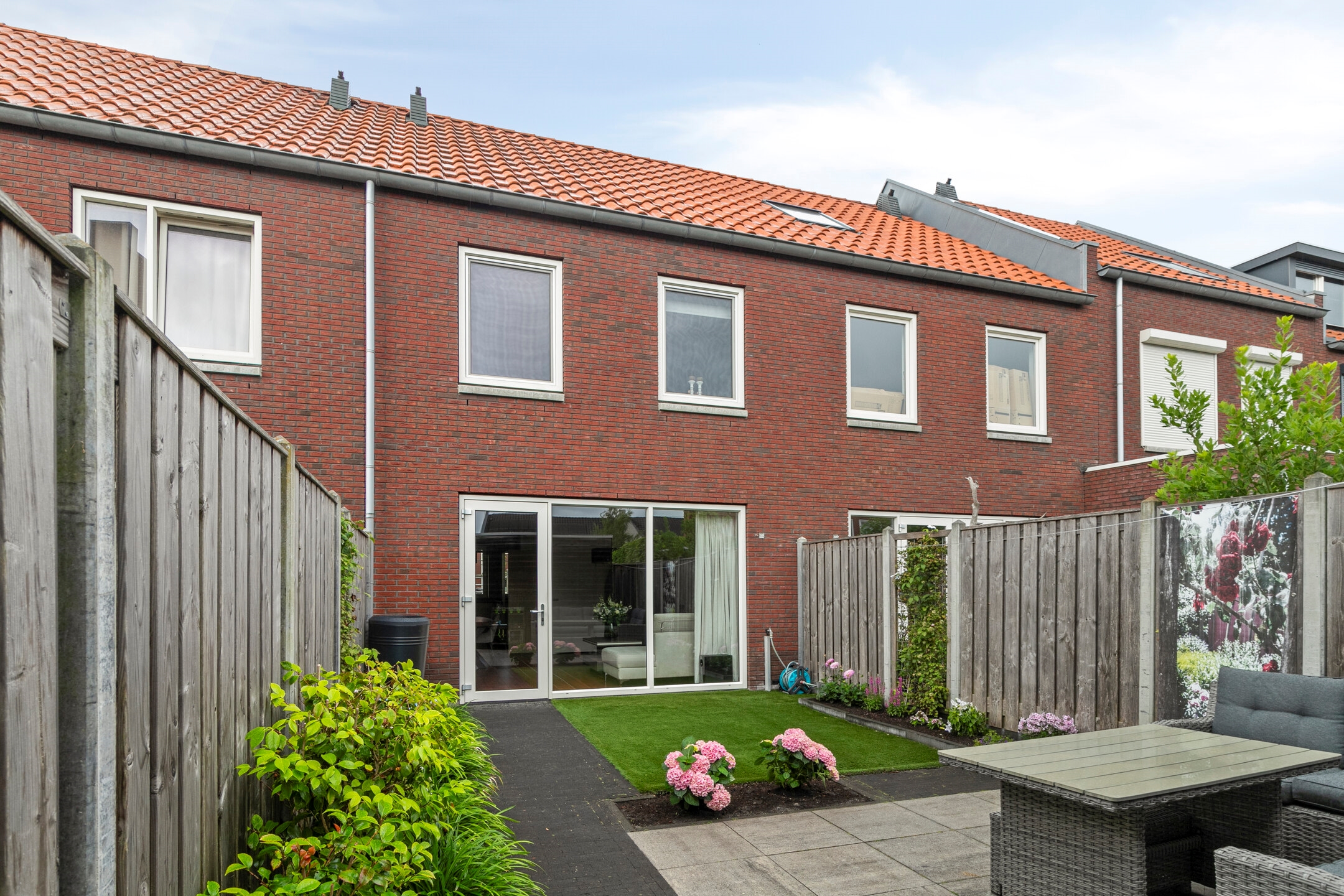 Voortuin, eveneens voorzien van sierbestrating en groen, een buitenkraan, en grenzend aan een leuk speelveldje. Ideaal voor de kids!