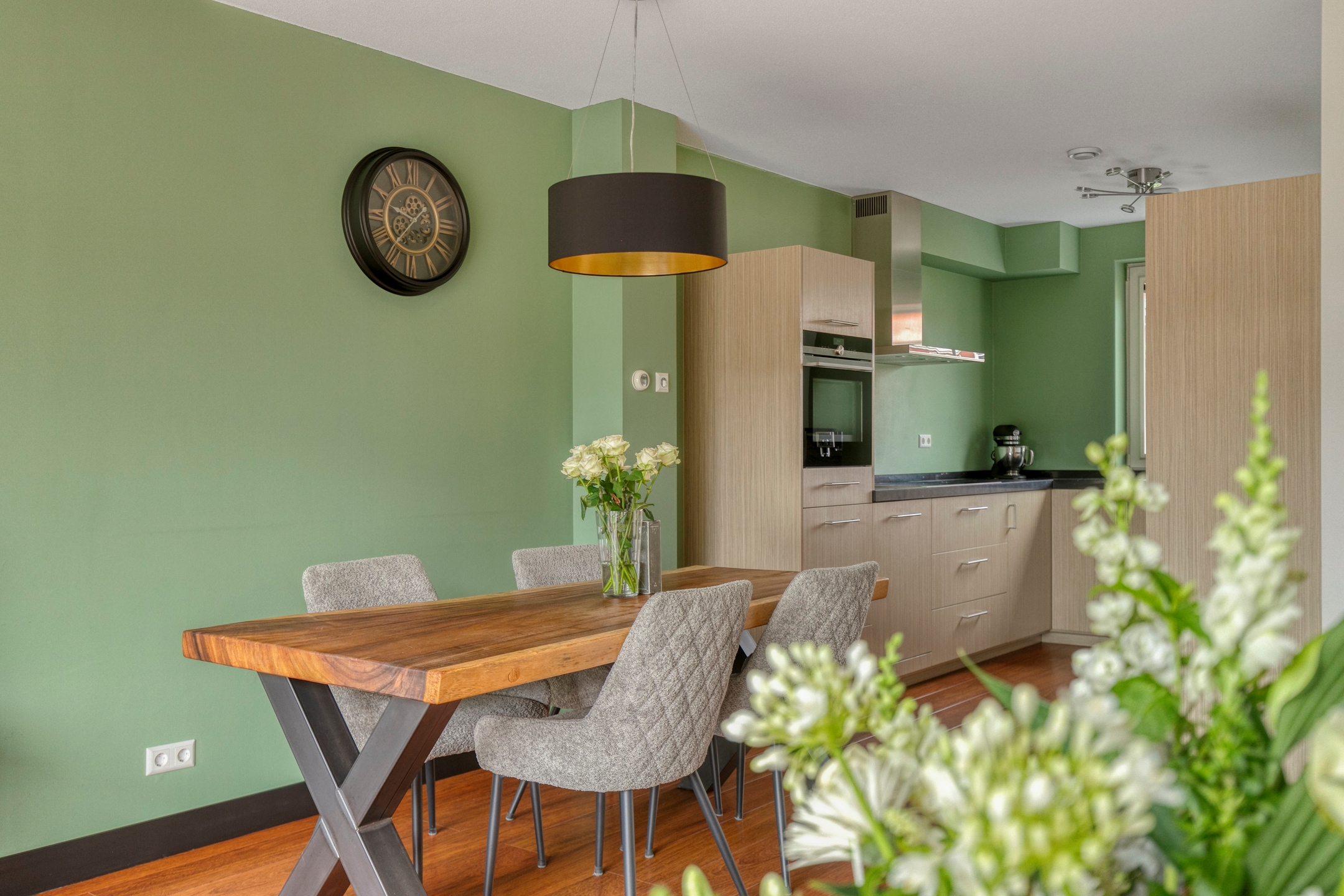 Keuken (2017), een maatwerk keuken, gelegen aan de voorzijde, met een keukenblok in U-vormige opstelling. De keuken is voorzien van hoogwaardig Siemens keukenapparatuur: een inductiekookplaat met afzuigkap, koel-vriescombinatie, combimagnetron en een vaatwasser. Daarnaast biedt de keuken veel bergruimte middels de brede lades en twee carrouselkasten en een luxe verlichte servies kast.