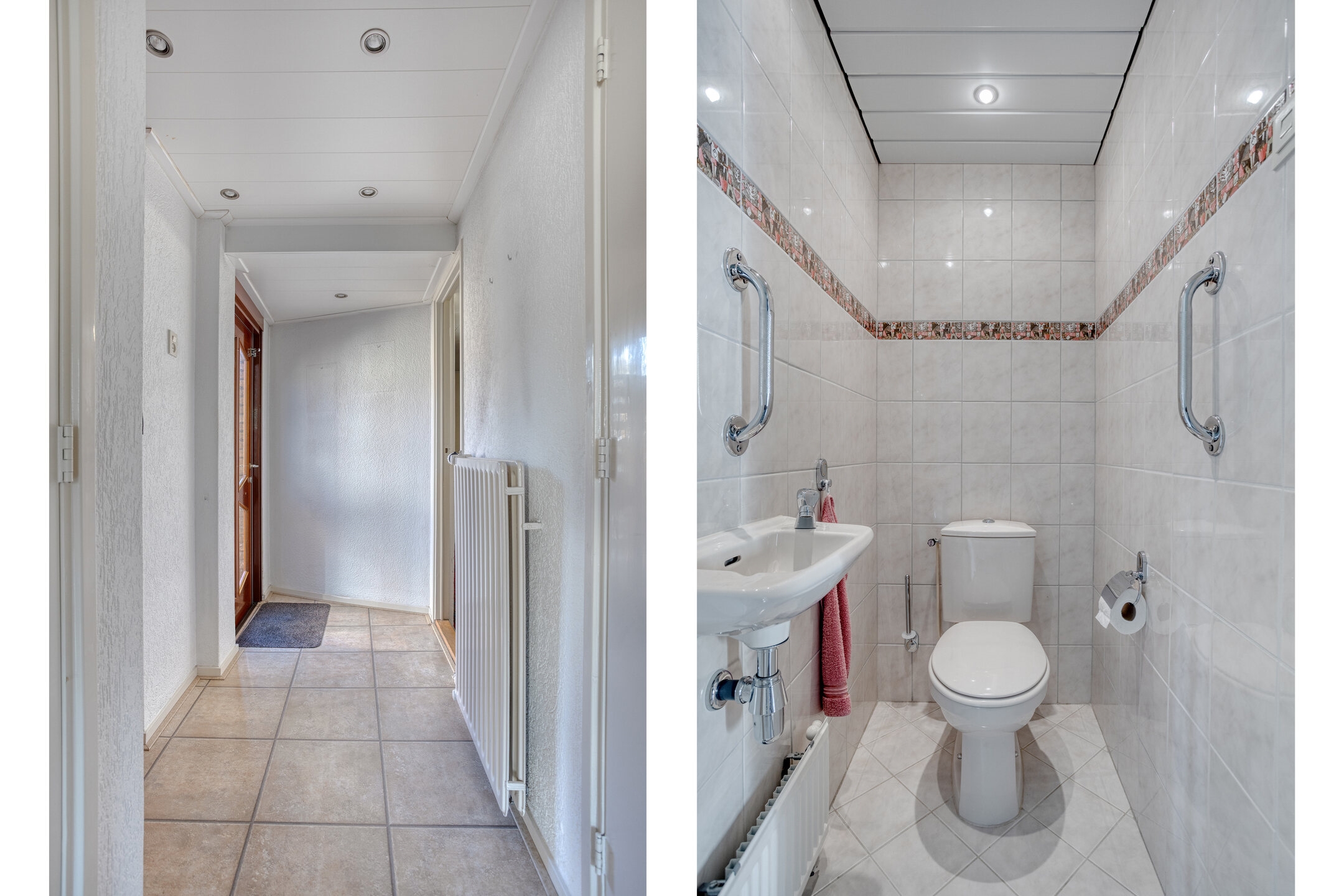 Badkamer, vergroot en geheel betegeld, voorzien van een douchecabine met thermostaatkraan, wastafel met spiegel, een tweede toilet (hangend closet), badkamerradiator en elektrische afzuiging.
