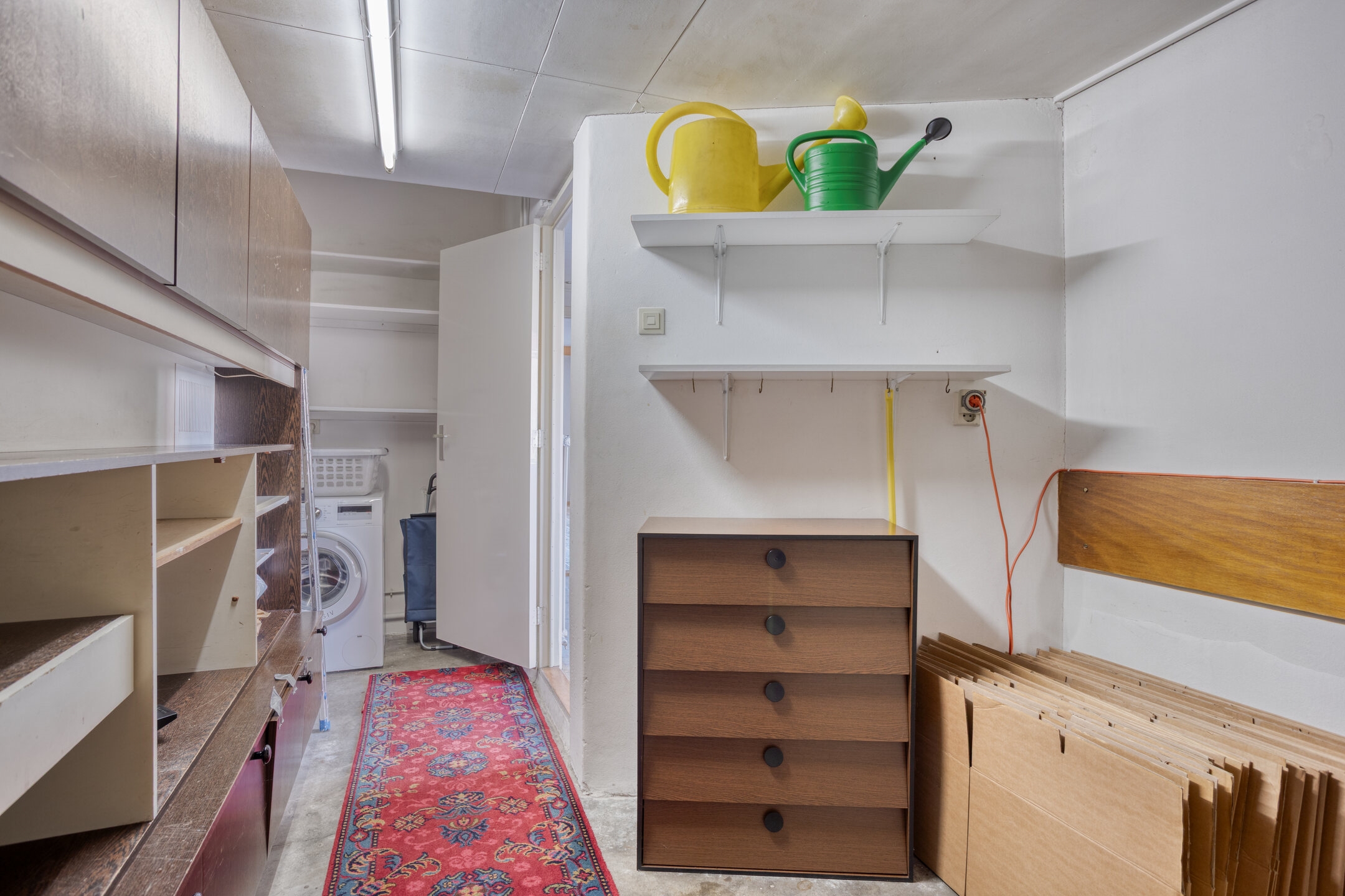 Berging, een ruime berging (voorheen de garage) aan de voorzijde met een wasmachineaansluiting.