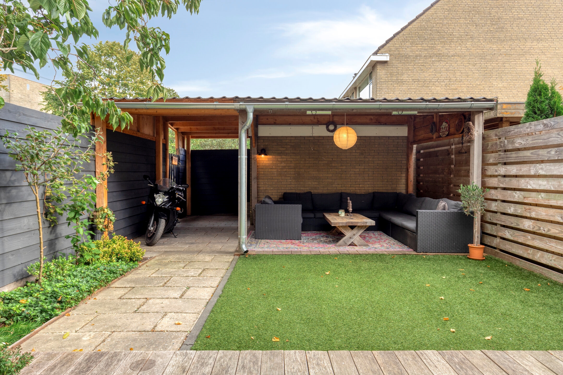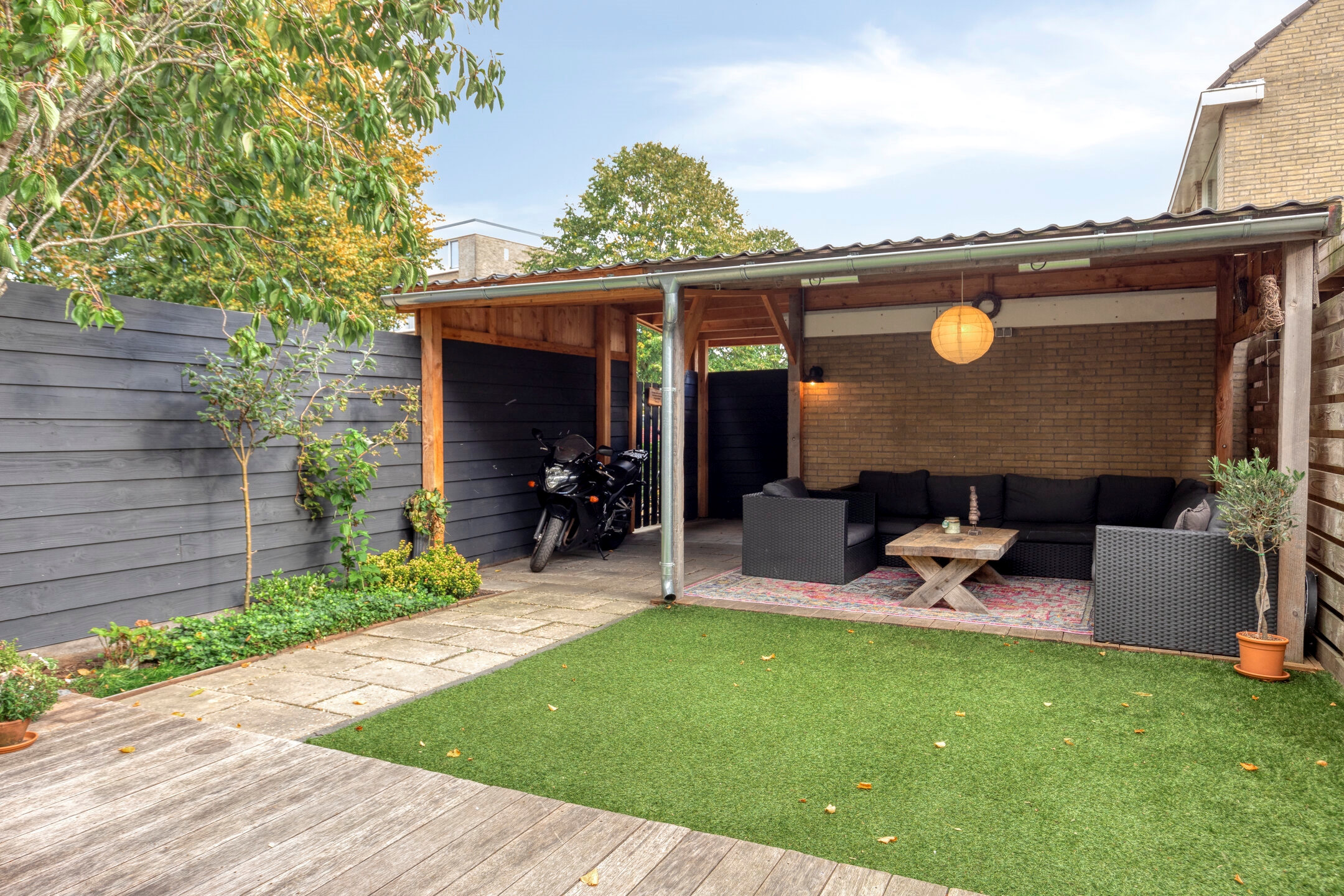 Achtertuin, voorzien van zowel groen, kunstgras, bestrating én een vlonderterras. Maar het echte hoogtepunt: de heerlijke en gezellige overkapping met verlichting en heaters. Genieten in de zomer én de winter dus! Verder is de achtertuin voorzien van zonwering (geplaatst in 2019 en bevindt zich in de tuin een stenen berging en een zij-uitgang.