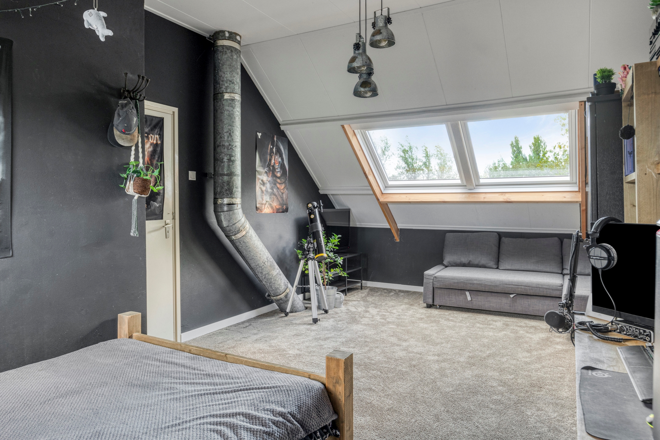 Slaapkamer 4, een ruime zolderkamer, voorzien van een dakkapel aan de achterzijde en 2 Velux dakramen (geplaatst in 2023) aan de voorzijde.