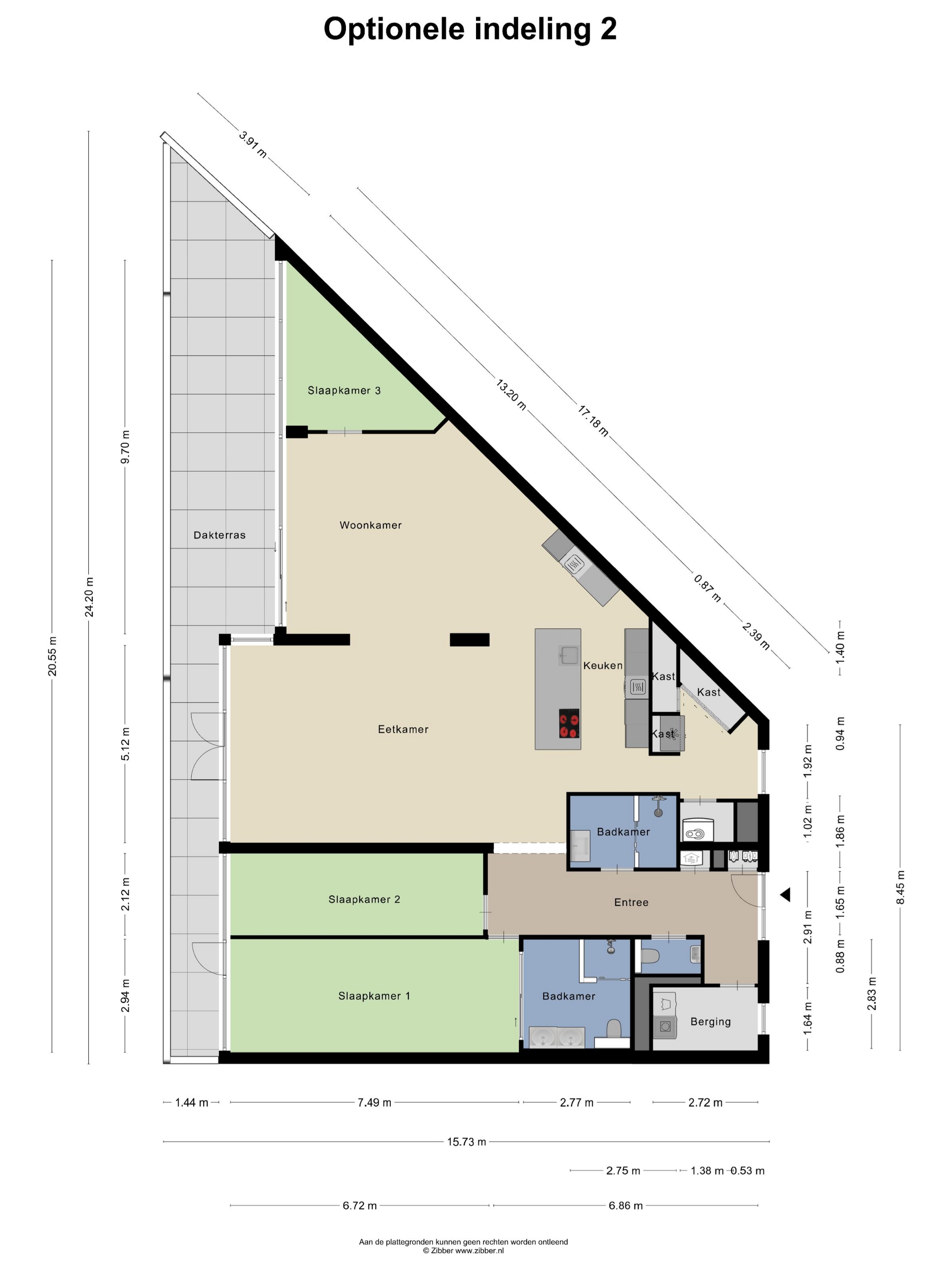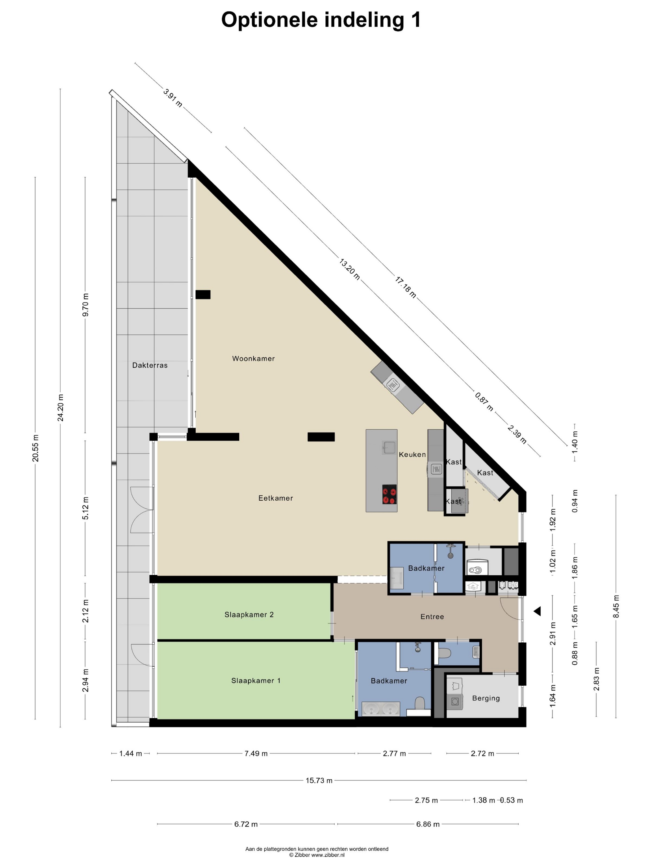 - Optioneel 2 of 3 slaapkamers