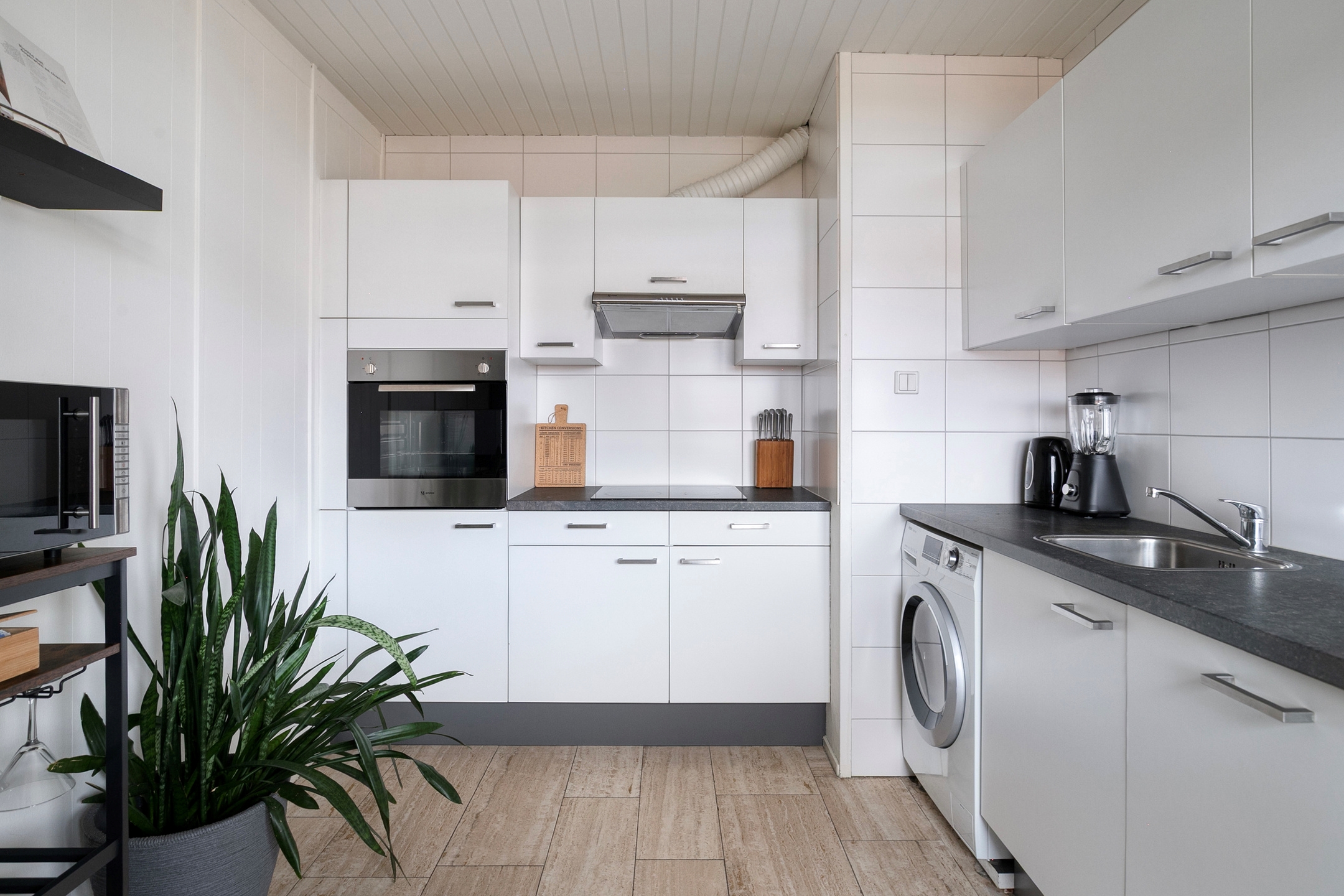 Keuken: ruime keuken gelegen aan de voorzijde en voorzien van een keukenblok in L-vormige opstelling met vaatwasser, keramische kookplaat, afzuigkap, oven en wasmachineaansluiting.
