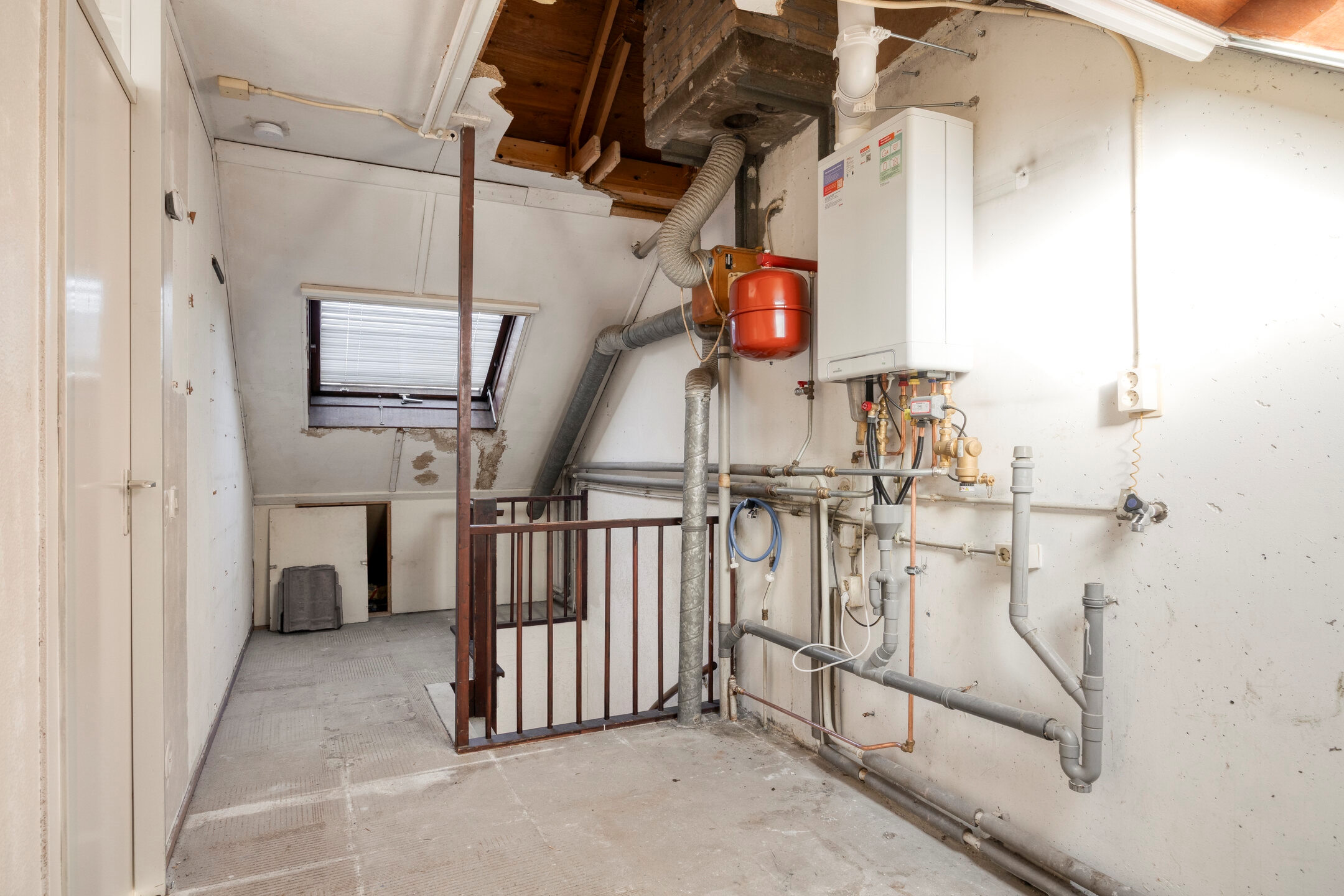 Overloop, voorzien van een dakraam aan de voor- en achterzijde en bergruimte achter de knieschotten aan de voor- en achterzijde, met toegang tot de wasmachineaansluiting, cv-ketel opstelling en slaapkamer 4.