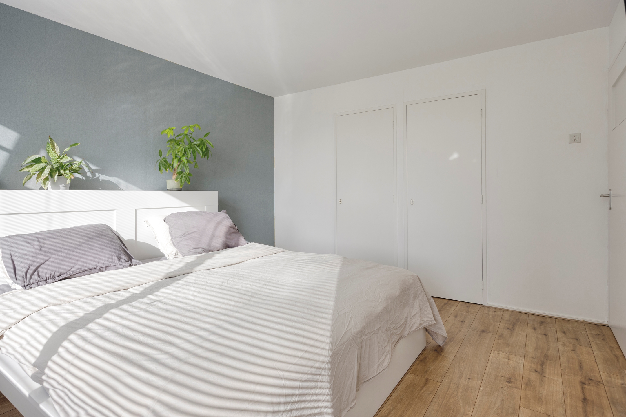 Slaapkamer 2, eveneens een royale kamer met 2 vaste kasten, gelegen aan de voorzijde en biedt toegang tot het balkon.
