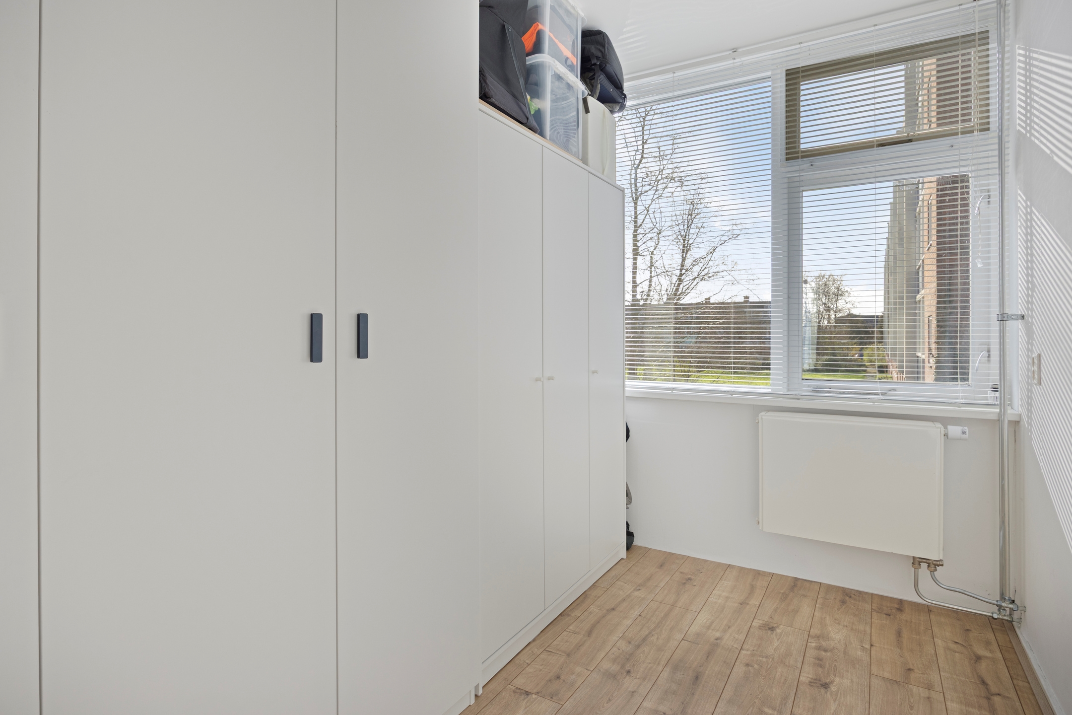 Slaapkamer 3, een prima extra kamer aan de achterzijde. De aanwezige kasten blijven achter.