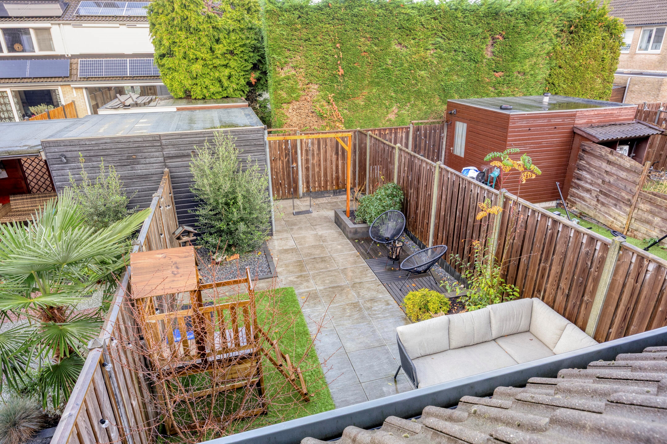 - Fraaie achtertuin met houten berging