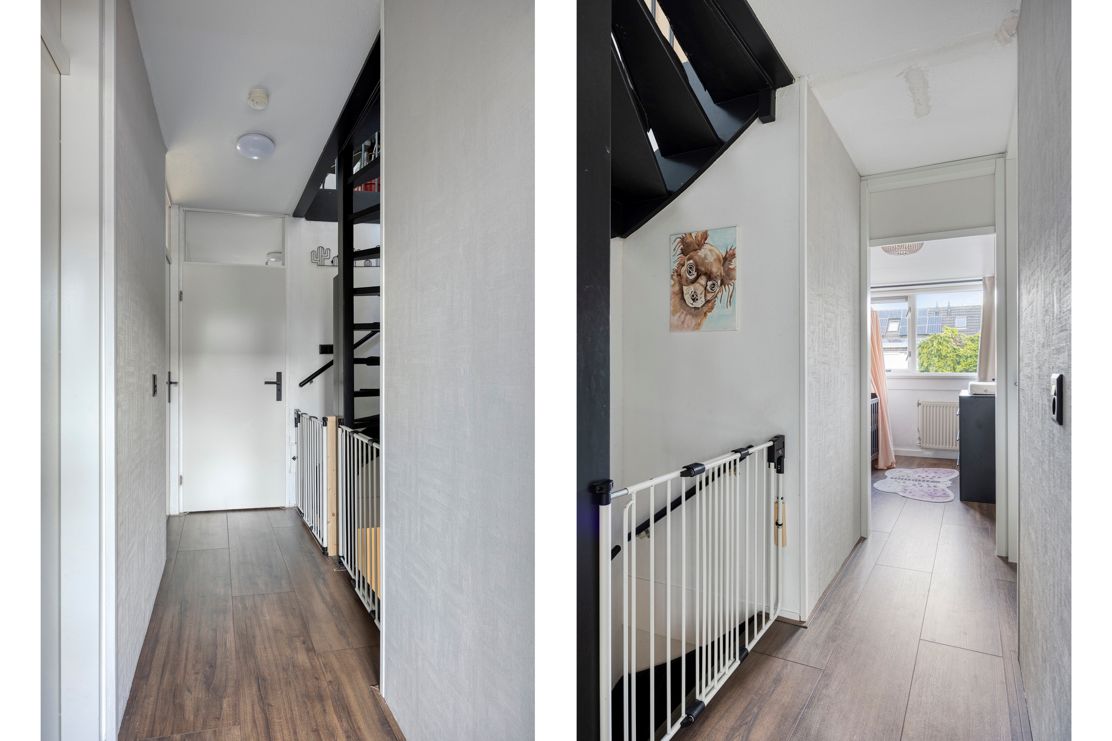 Overloop, met toegang tot 3 slaapkamers, badkamer en trapopgang naar tweede verdieping.