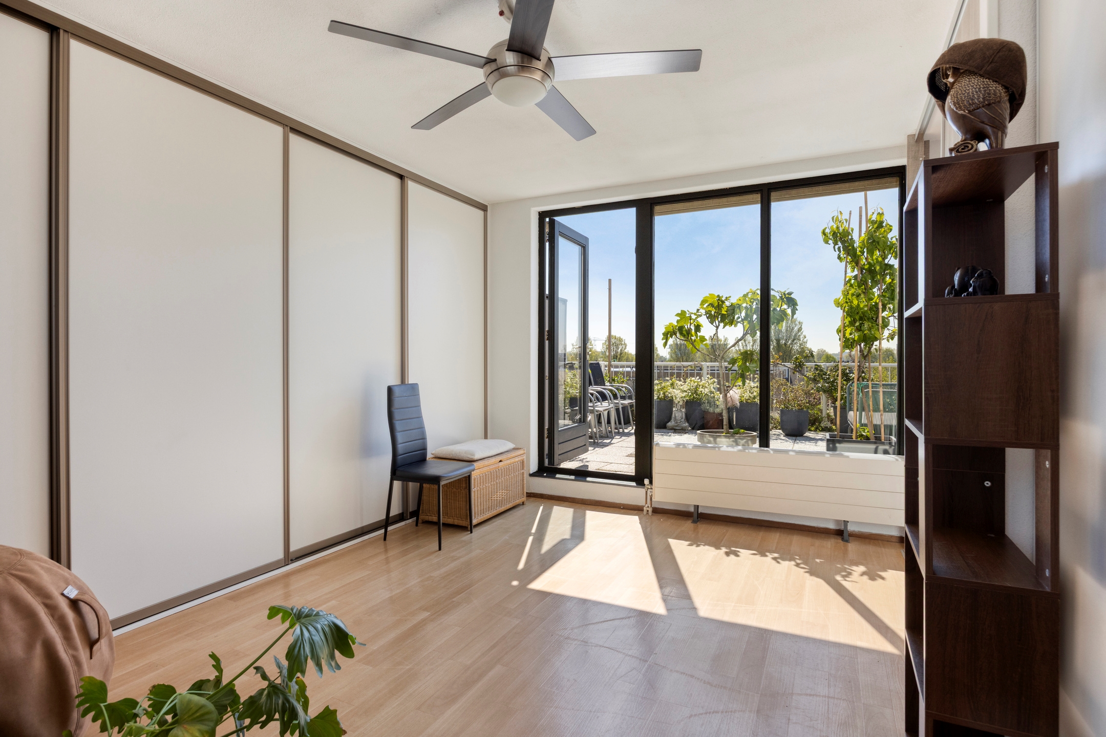 Met een groot dakterras van maar liefst ca. 25 m2 op het zuiden aan de achterzijde en ook een groot balkon aan de voorzijde van de woning, kies je zelf voor de zon of verkoelende schaduw.